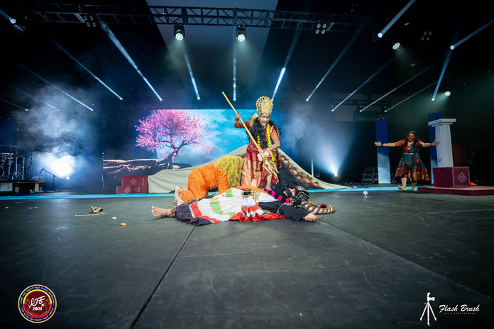 Chamachaluve: The play, written by Dr. Sujata Akki and directed by Nithish Sridhar, depicts an enthralling story of Mahishasura Mardhana and the tale of Nanjundeshwara and Chamundeshwari.